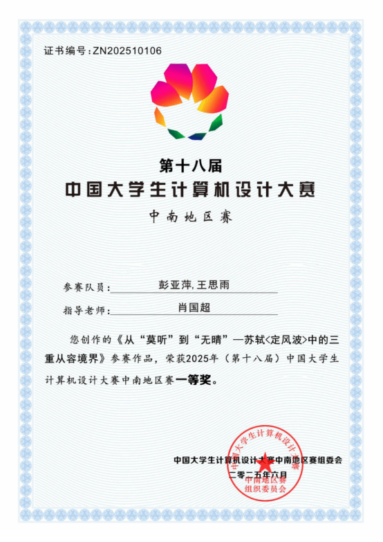 我院选送作品荣获2025年(第18届)中国大学生计算机设计大赛国家级三等奖