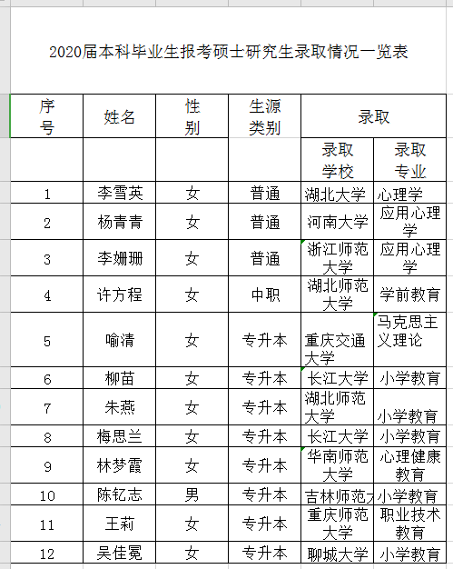2020届本科毕业生报考硕士研究生录取情况一览表