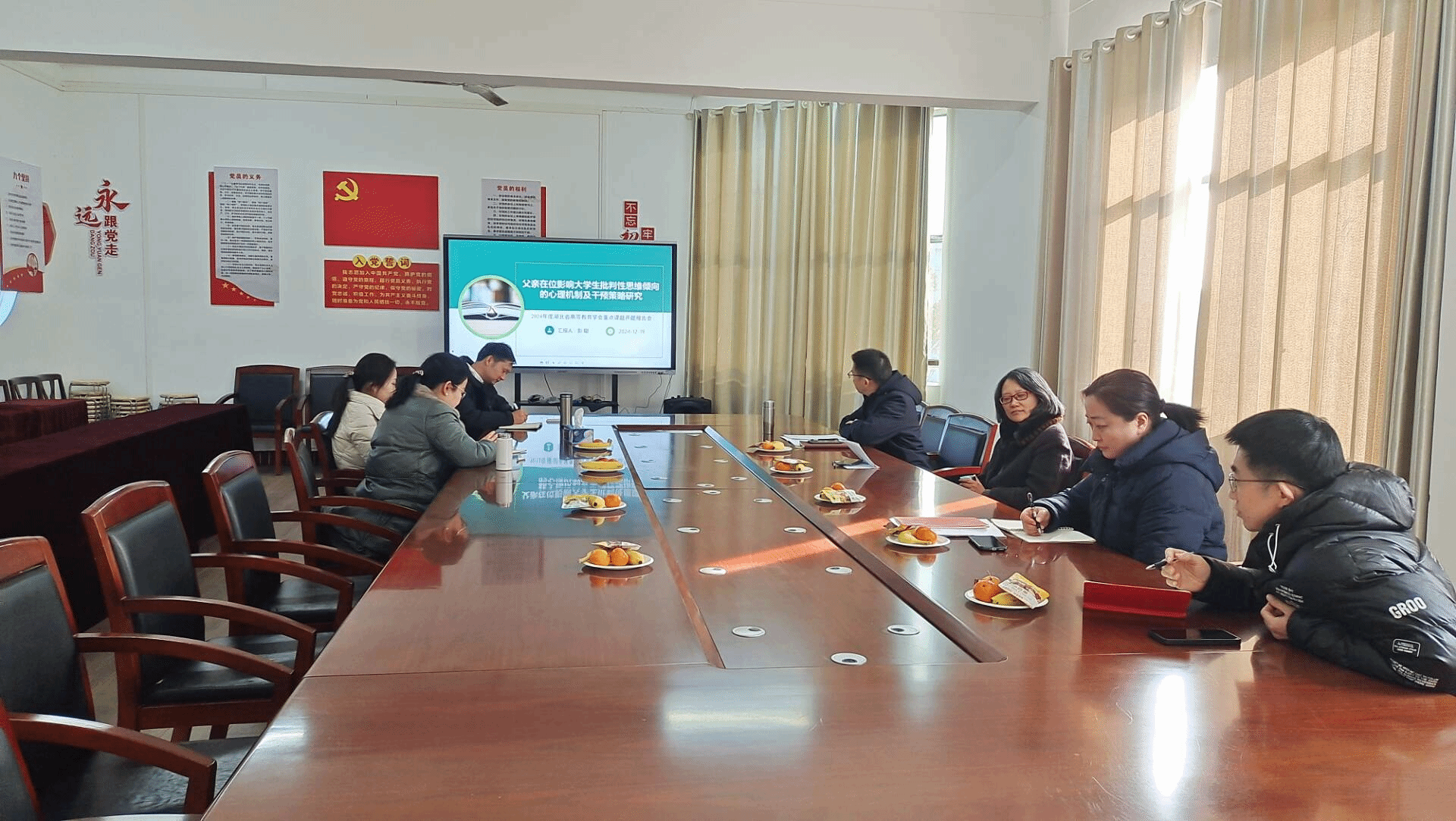 2024年12月19日上午,我院彭聪博士主持的2024年湖北省高等教育学会重点课题“父亲在位影响大学生批判性思维倾向的心理机制及干预策略研究”(2024XD078)顺利开题。
