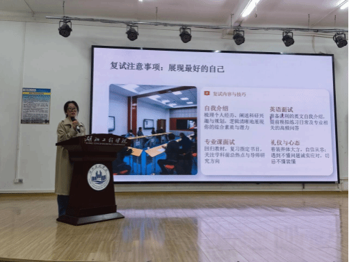 长江大学拟录取的刘芷珊同学,则围绕“就业还是考研”的选择困境、备考过程中的心态调节以及初复试实战经验展开分享。她结合自身抉择经历,为同学们分析了考研与就业的发展前景,建议大家结合自身职业规划理性选择,同时分享了缓解备考焦虑、克服备考瓶颈的实用方法,细致讲解了复试中的礼仪规范、答题技巧和心态调整要点,为学子们应对复试提供了有力指导。